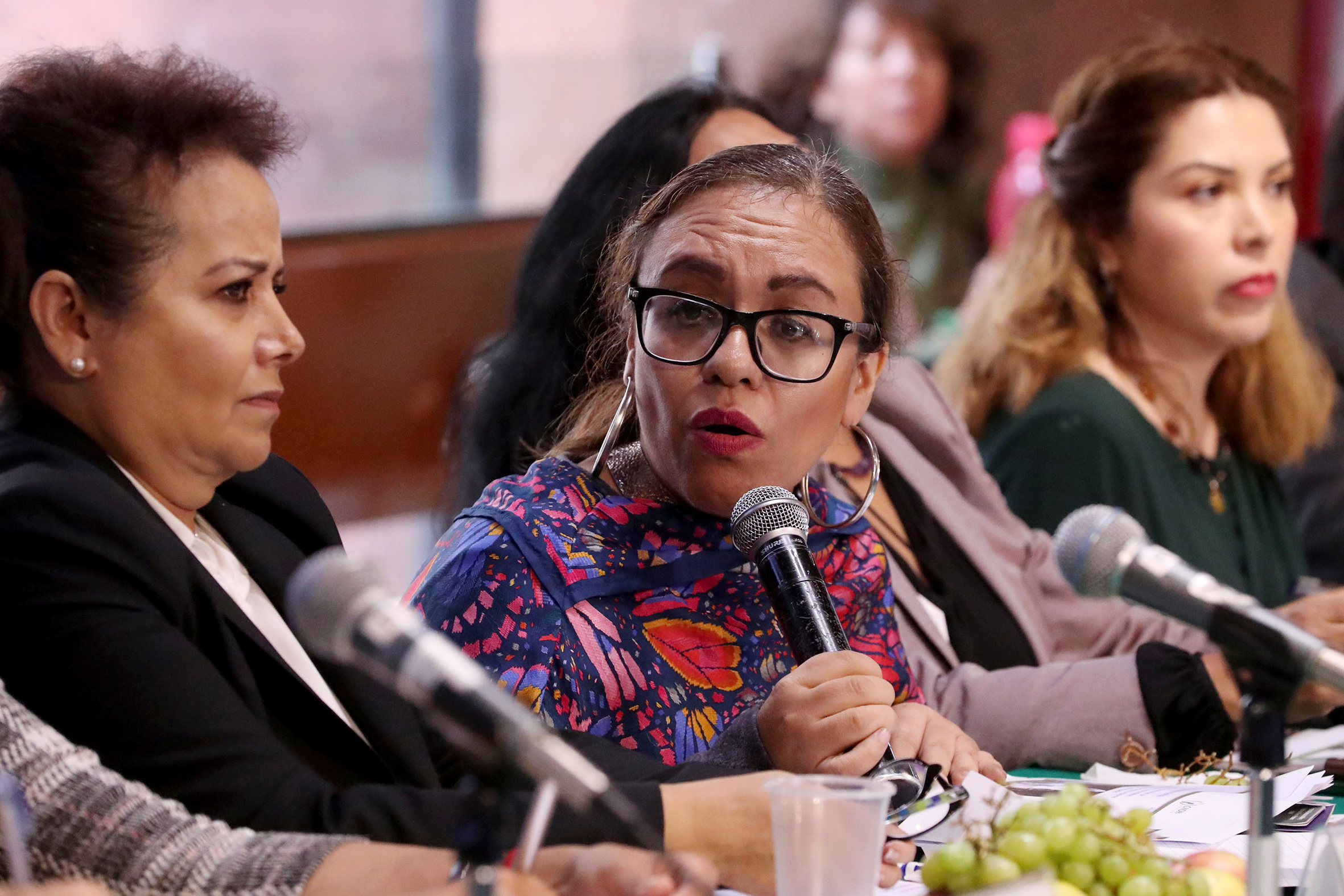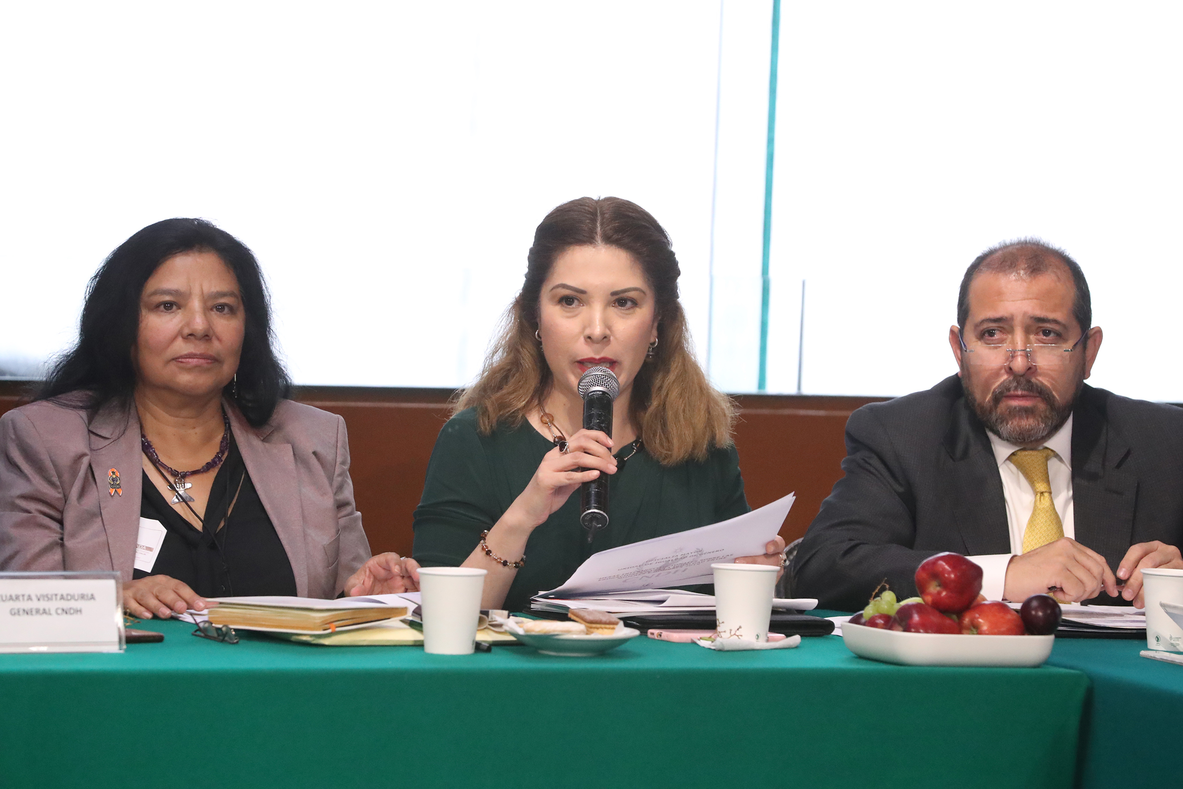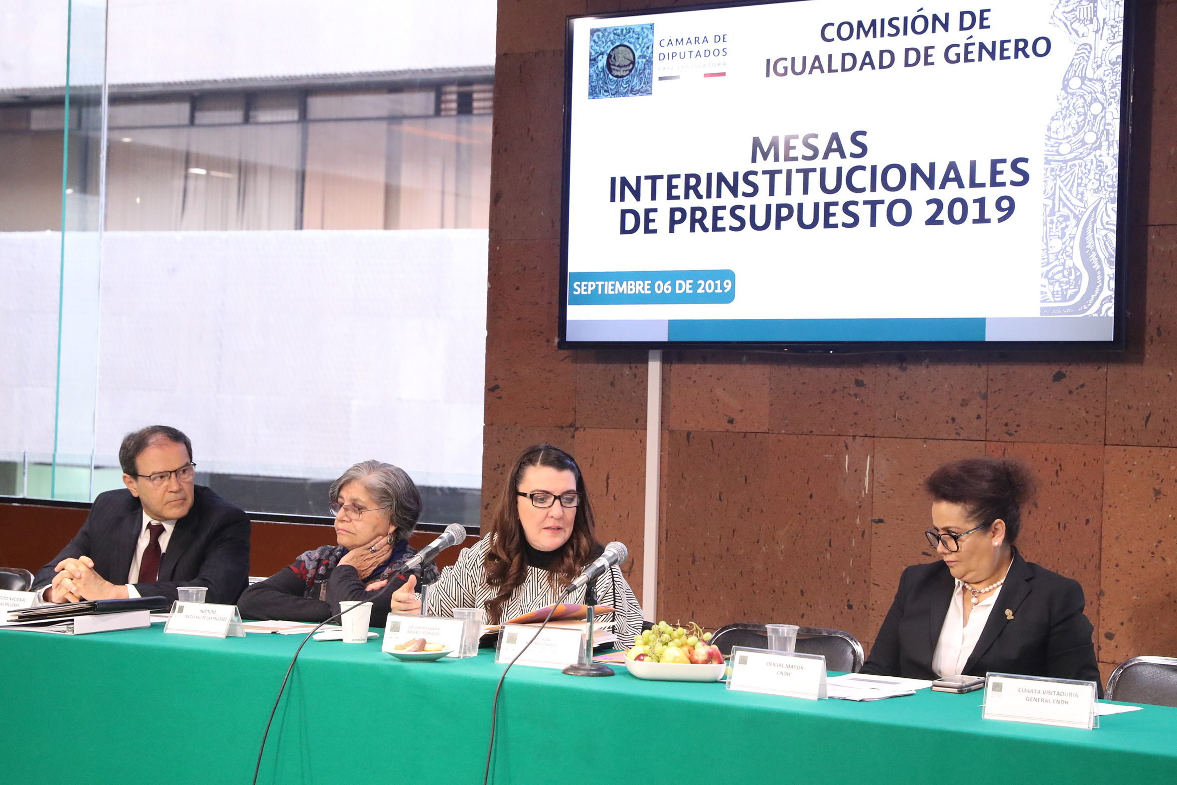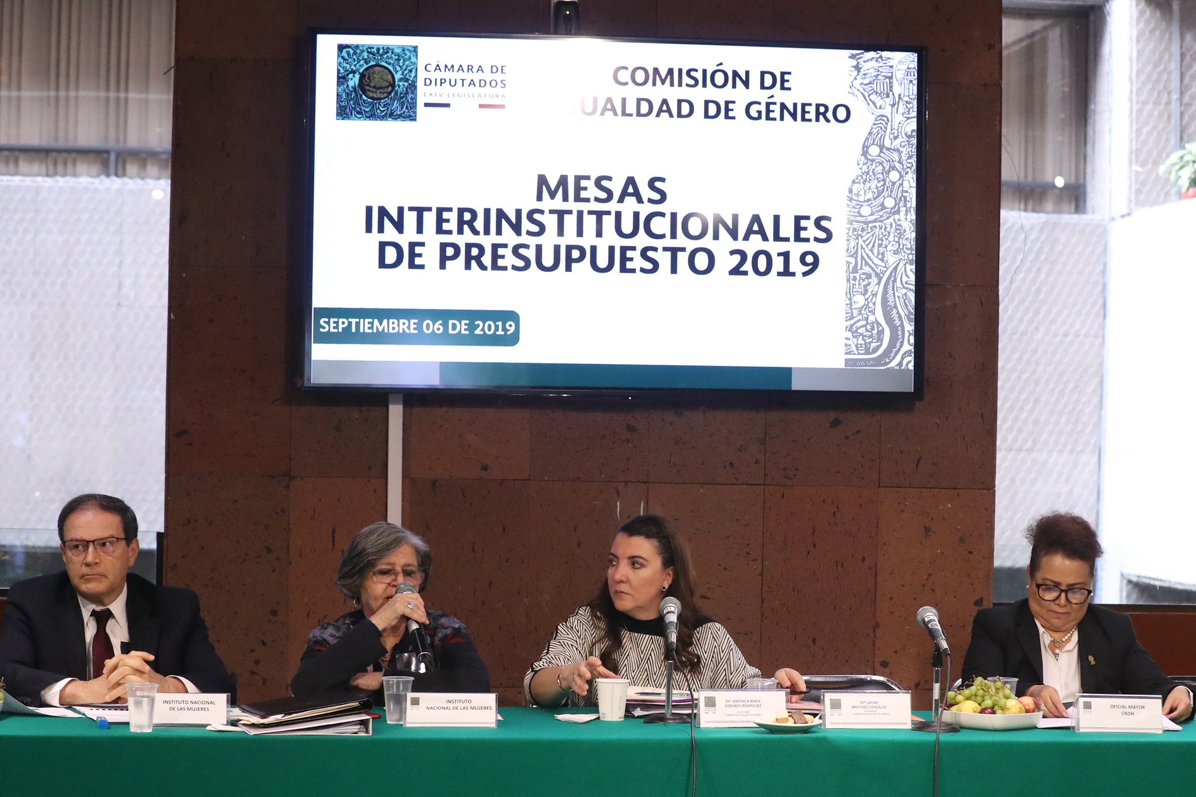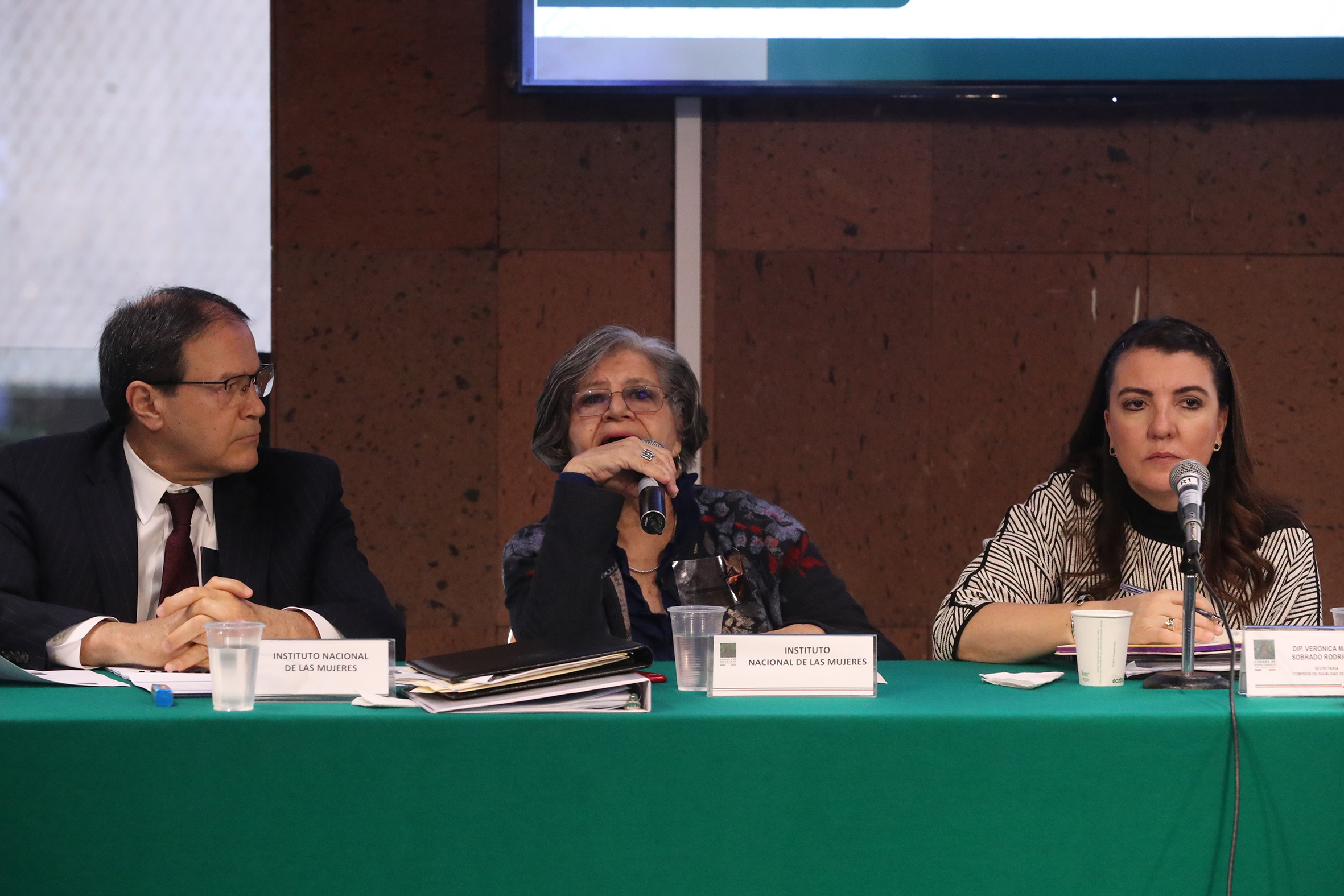Dip. Verónica María Sobrado Rodríguez y Dip. Laura Martínez González con representantes de Instituto Nacional de las Mujeres, CNDH e INE
