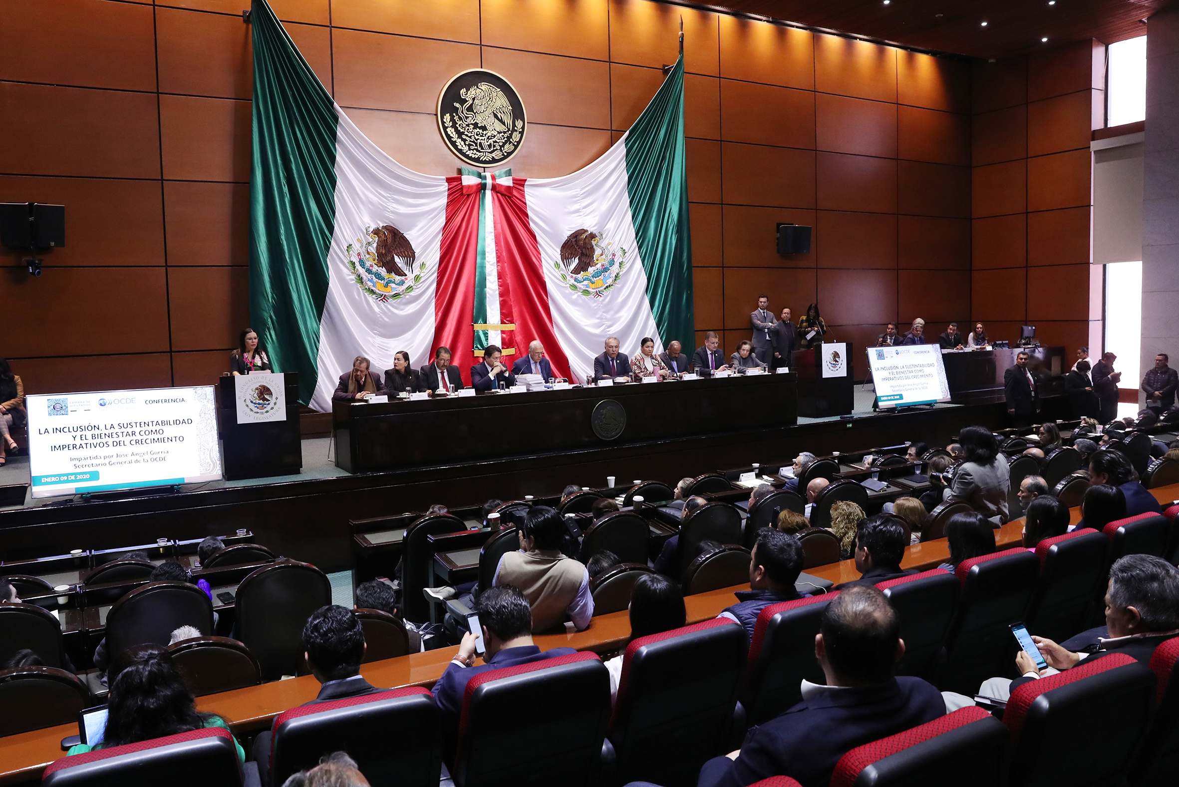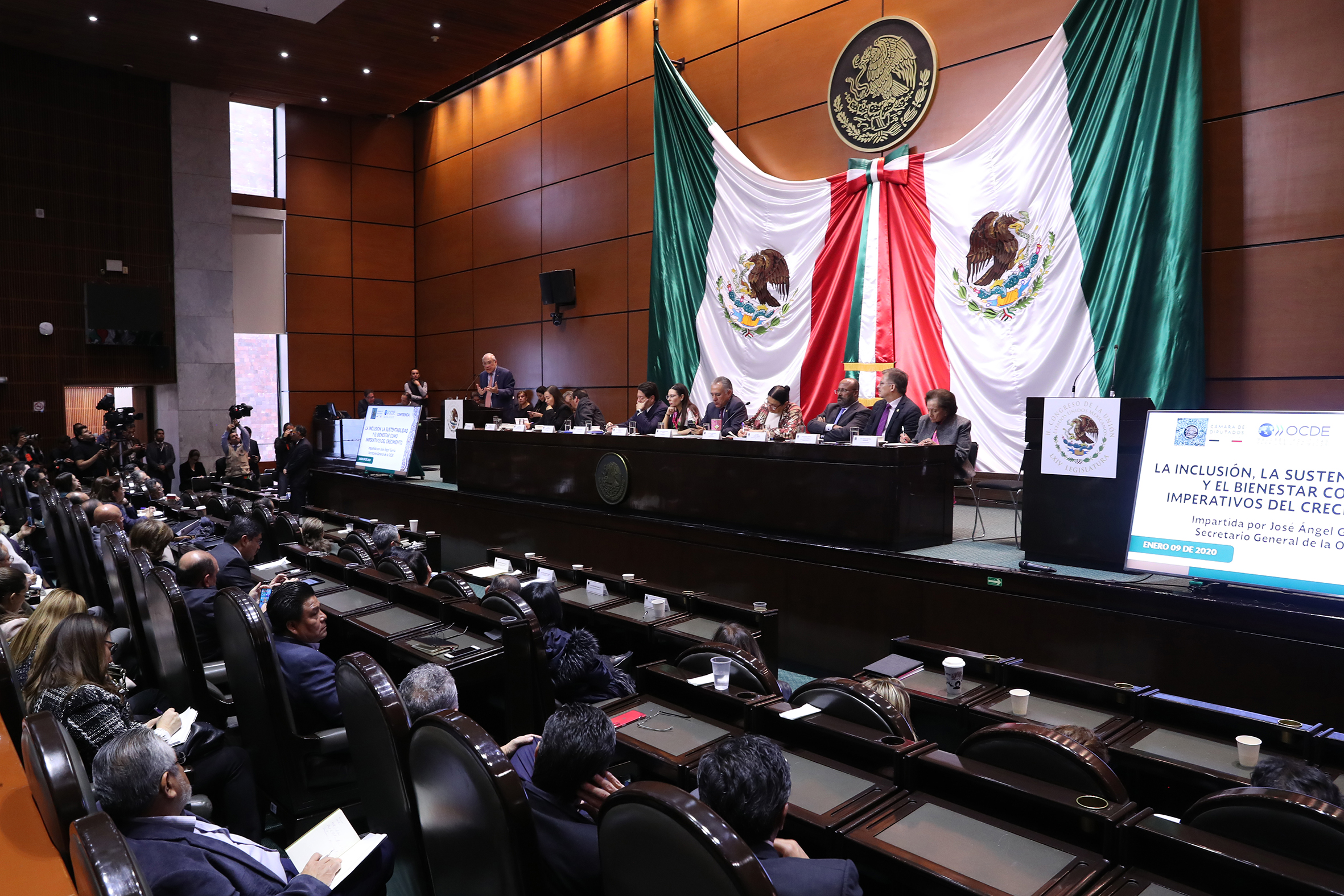 José Ángel Gurría Secretario de la OCDE y Dip. Presidenta Laura Rojas,