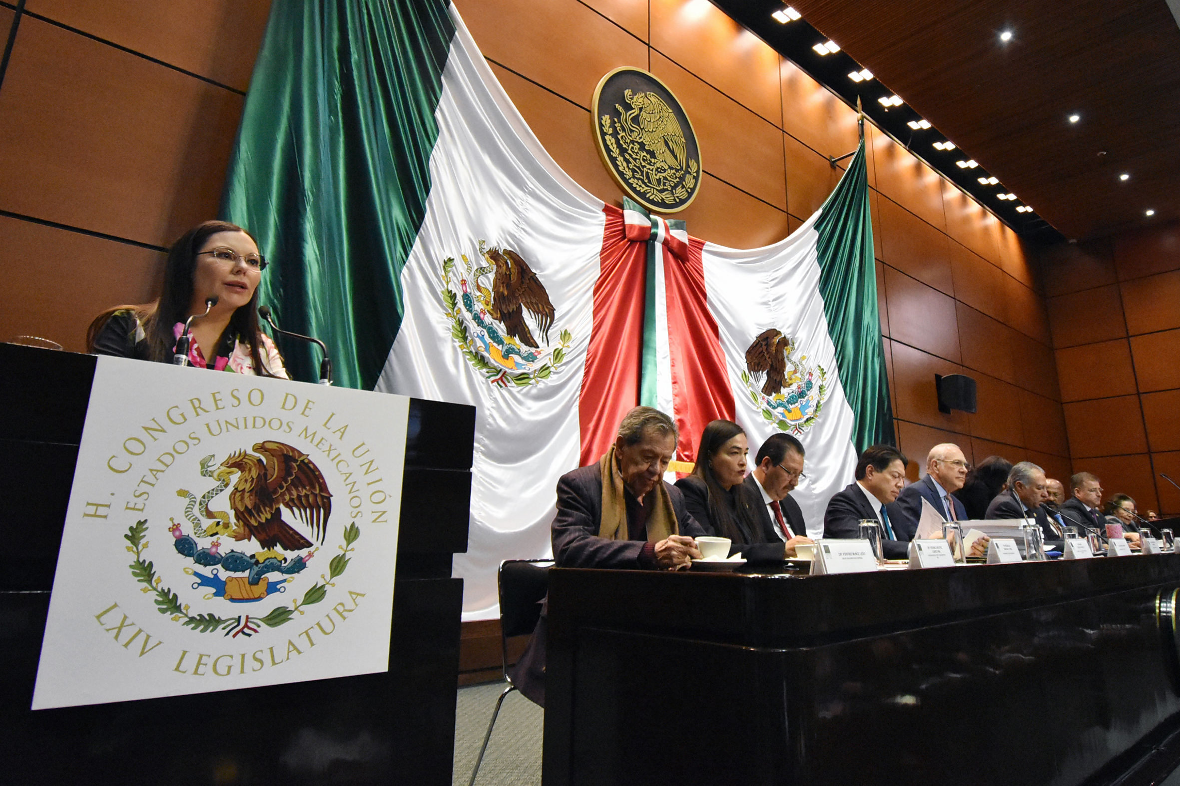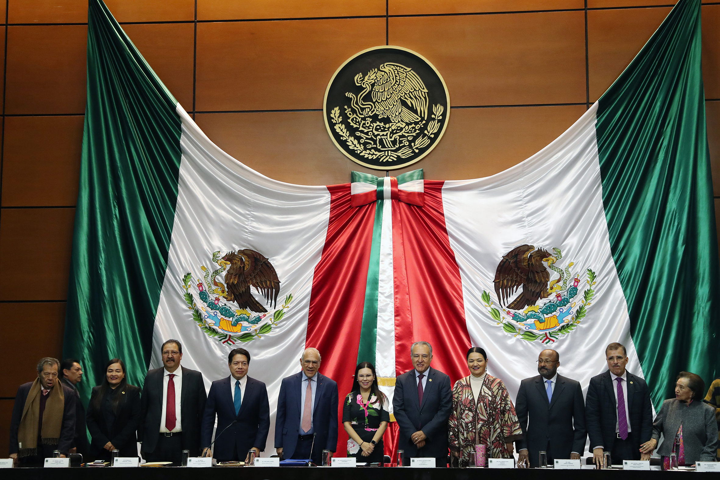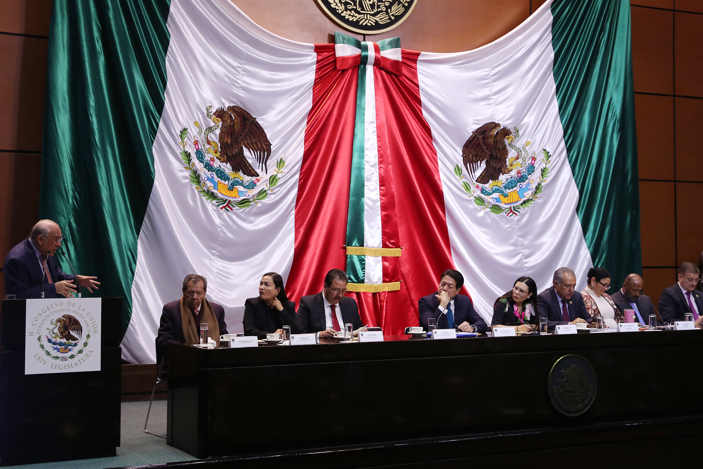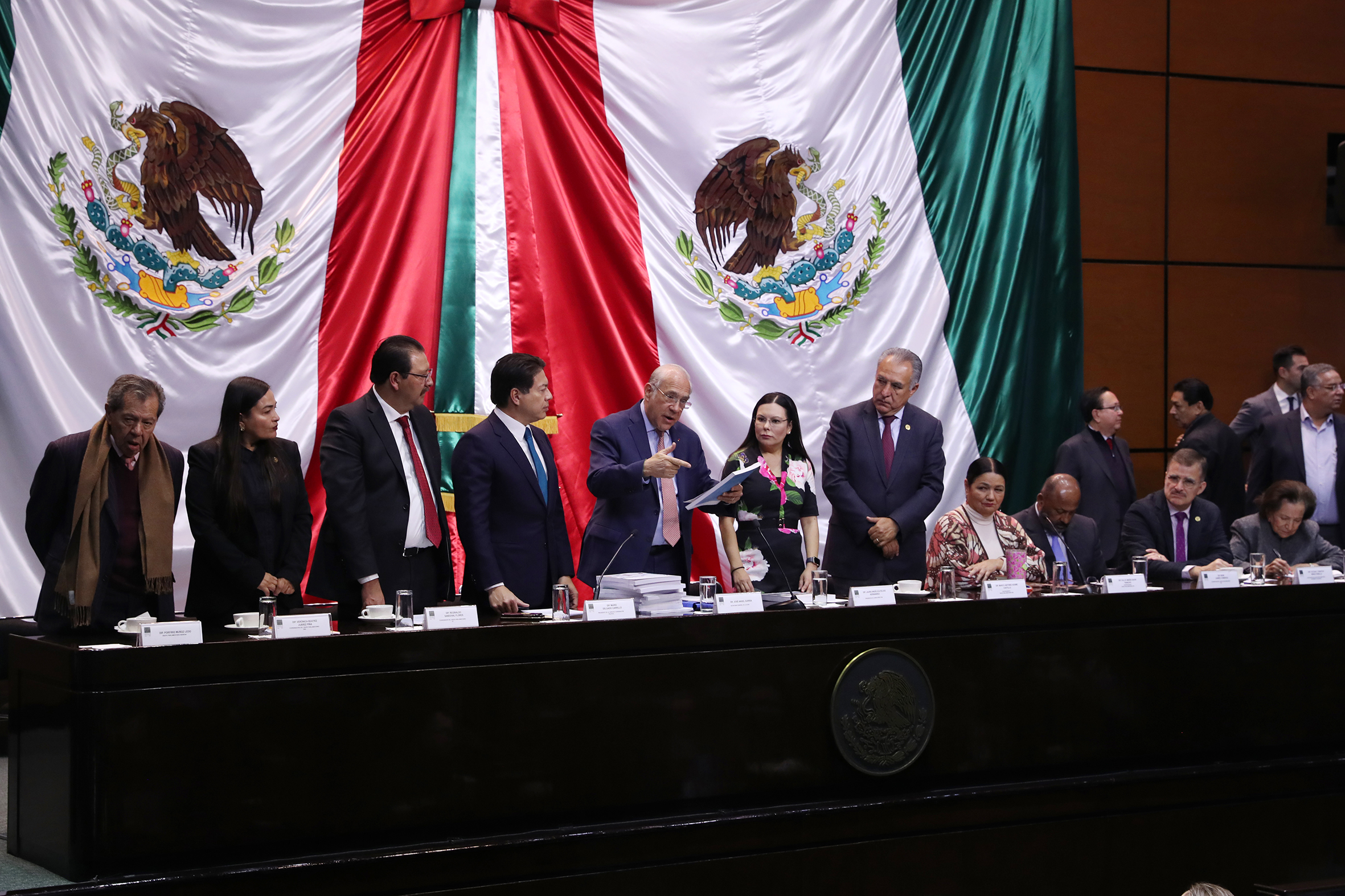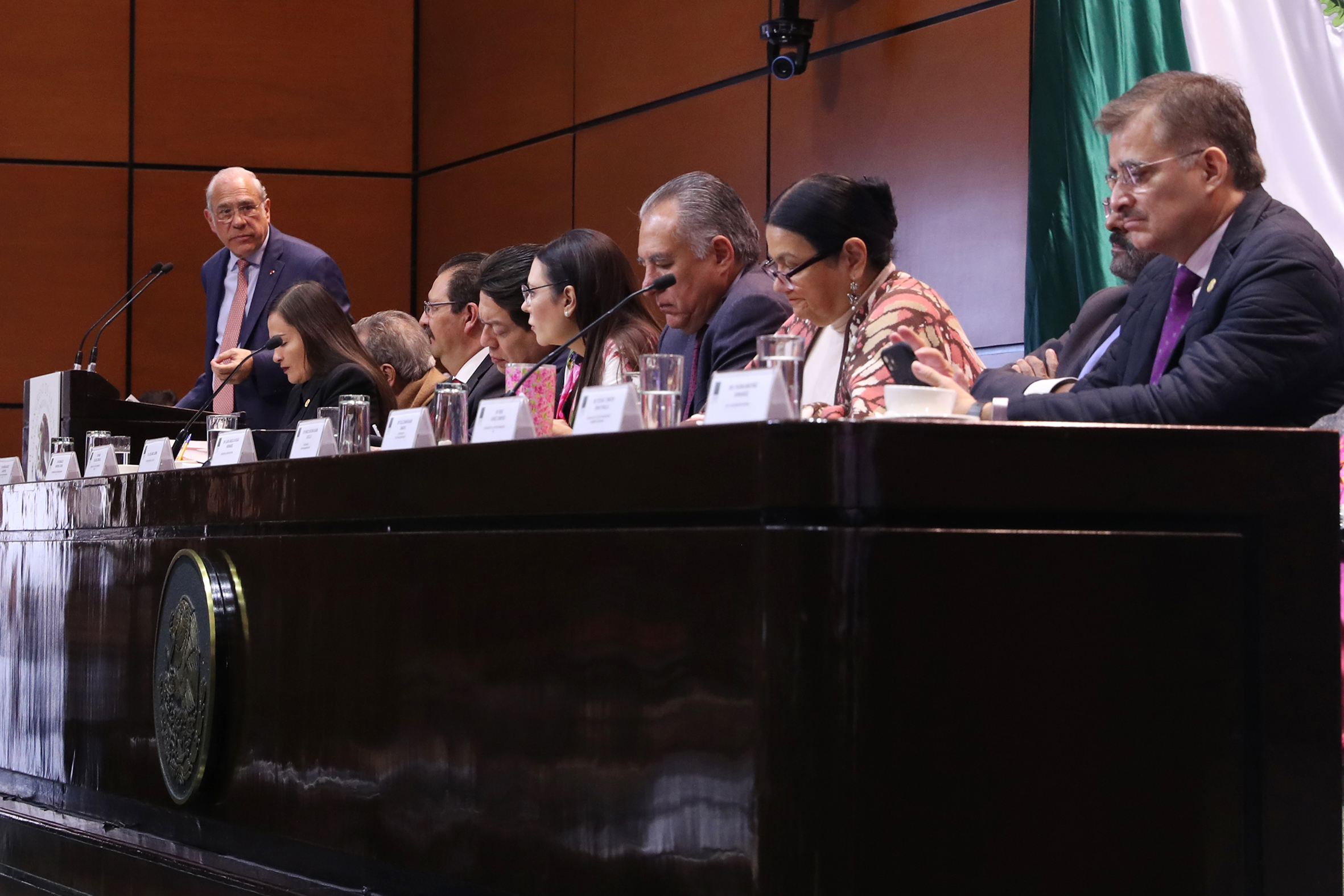 Dip. Porfirio Muñoz, Dip. Verónica Juárez, Dip. Reginaldo Sandoval, Dip. Mario Delgado, José Ángel Gurría Secretario de la OCDE, Dip. Presidenta Laura Rojas, Dip. Marco Adame, Dip. Dulce Sauri,Dip. René Juárez, Dip. Tonatiuh Bravo y Sen. Ifigenia Martínez
