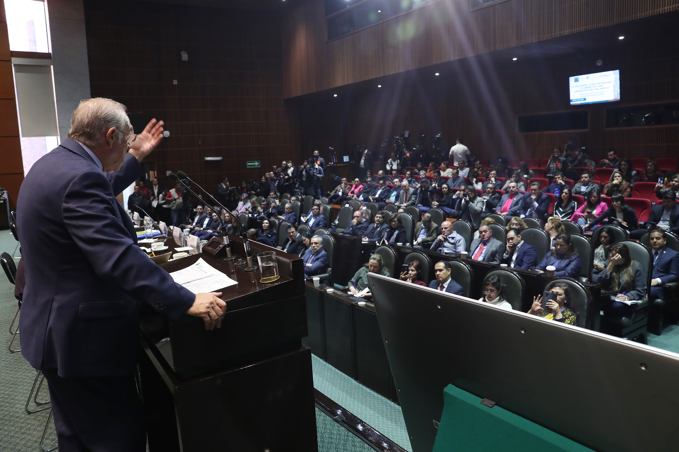 José Ángel Gurría Secretario de la OCDE, Dip. Porfirio Muñoz, Dip. Verónica Juárez, Dip. Reginaldo Sandoval, Dip. Mario Delgado, Dip. Presidenta Laura Rojas, Dip. Marco Adame, Dip. Dulce Sauri,Dip. René Juárez y Dip. Tonatiuh Bravo