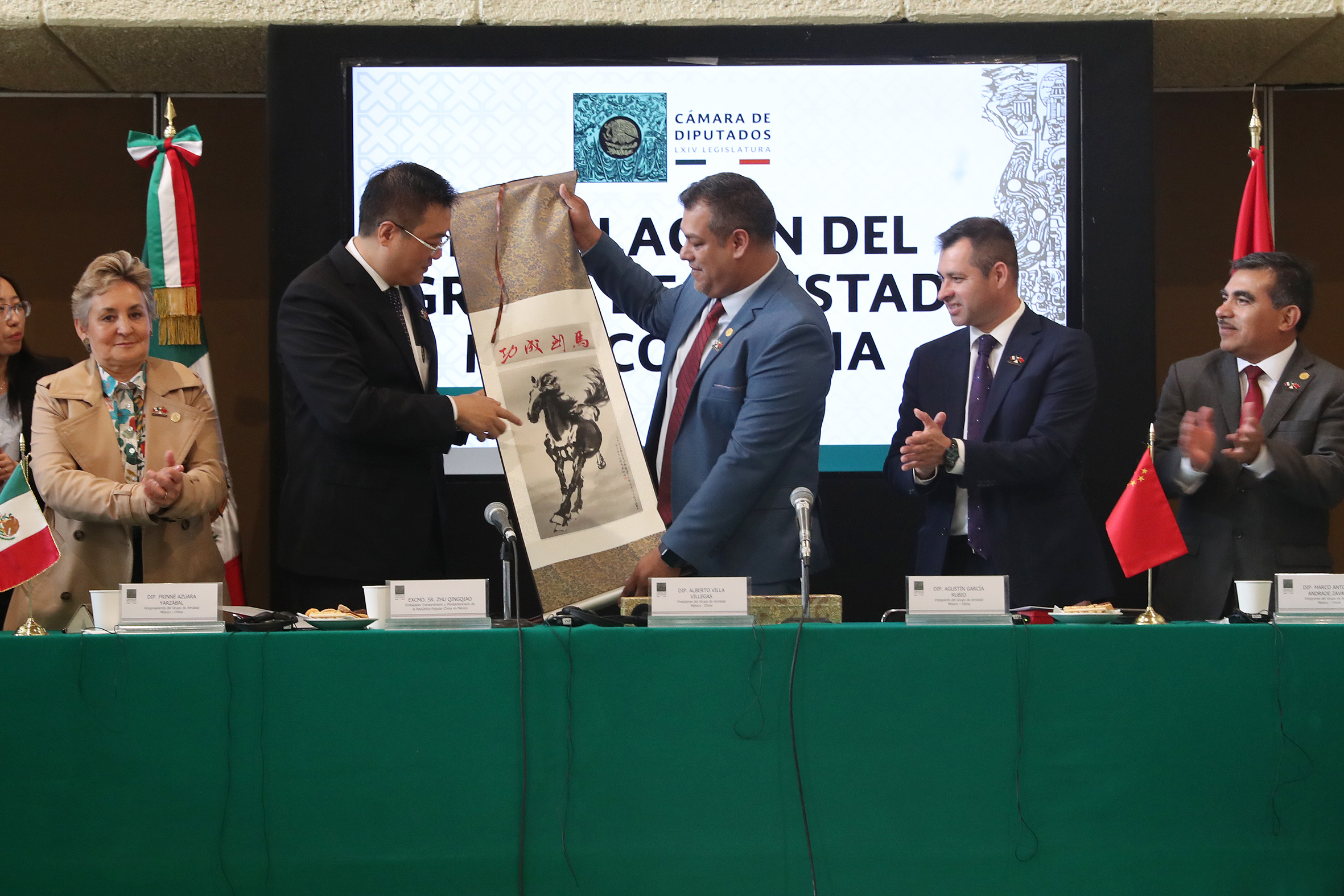 Dip. Frinne Azuara, Excmo. Sr. Zhu Qingqiao, Dip. Alberto Villa y Dip. Agustín García