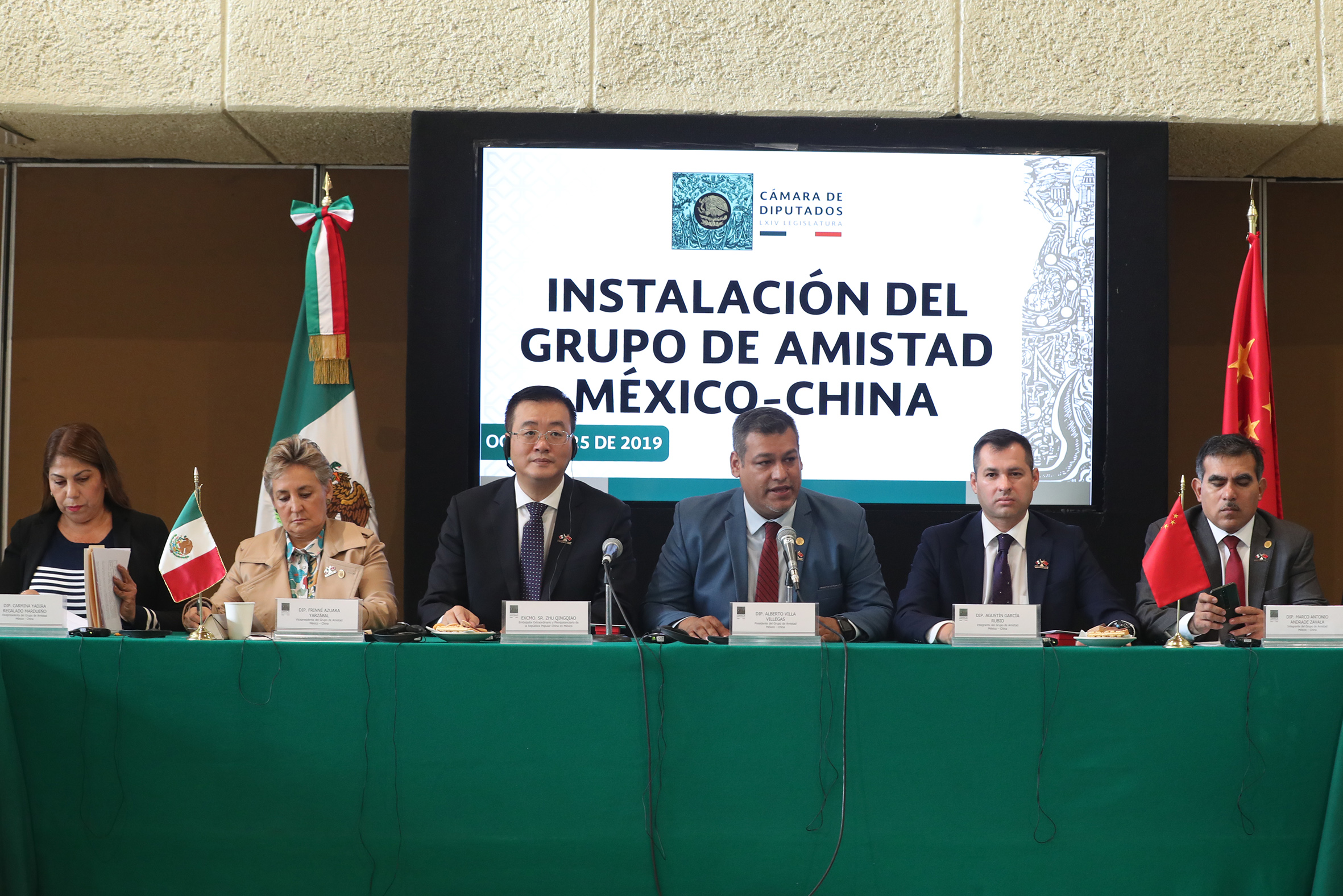Dip. Carmina Regalado, Dip. Frinne Azuara, Excmo. Sr. Zhu Qingqiao, Dip. Alberto Villa, Dip. Agustín García y Dip. Marco Andrade