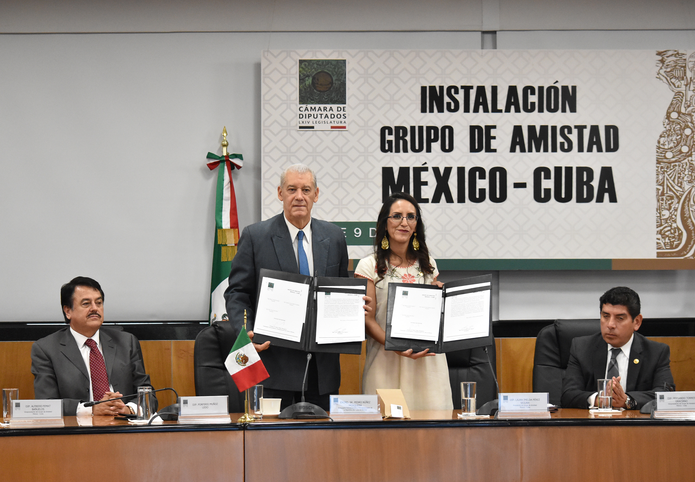 Dip. Simey Olvera, Dip. Reginaldo Sandoval, Dip. Jorge Sibaja, Dip. Porfirio Muñoz, Excmo. Sr. Pedro Nuñez y Dip. Laura Pérez