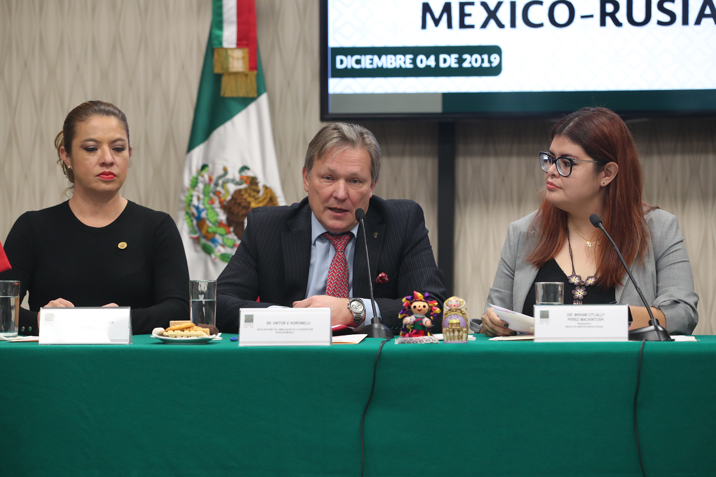 Dip. Nelly Maceda, Sr. Viktor V. Koronelli y Dip. Miriam Pérez