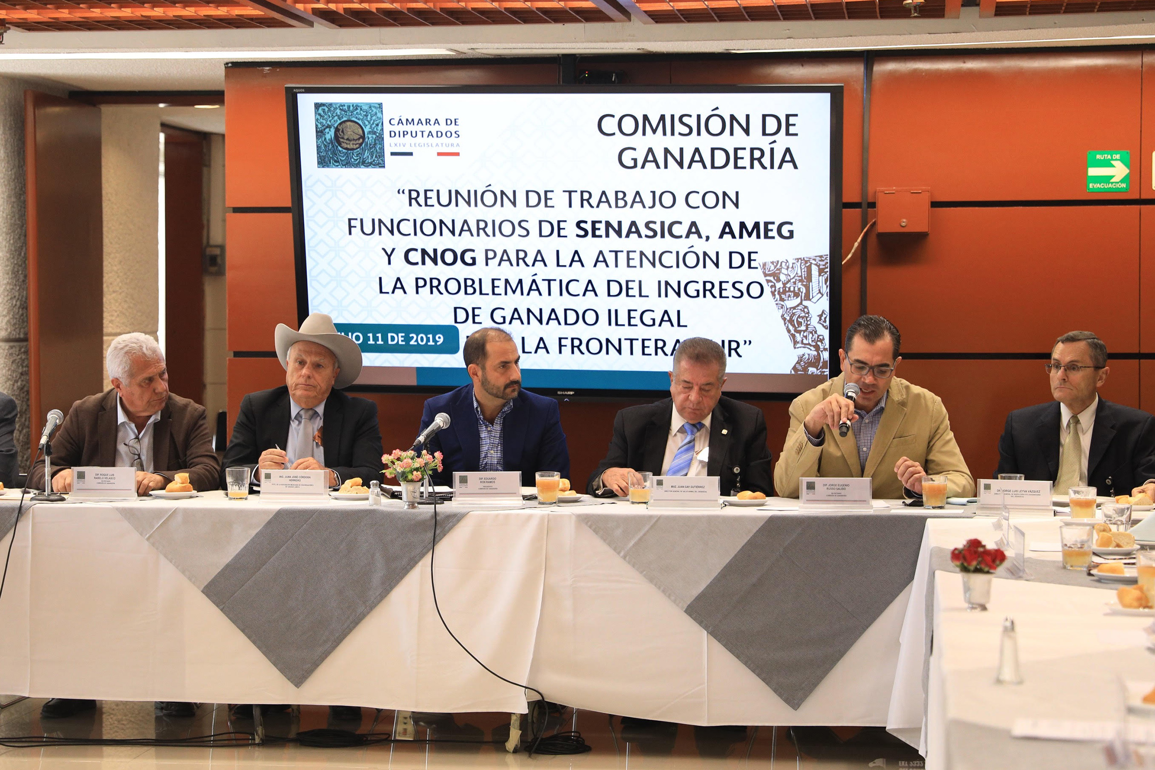 Dip. Roque Rabelo, Ing. Juan Córdoba, Dip. Eduardo Ron, M.V.Z. Juan Gay Gutiérrez, Dip. Jorge Ruso y Dr. Jorge Leyva